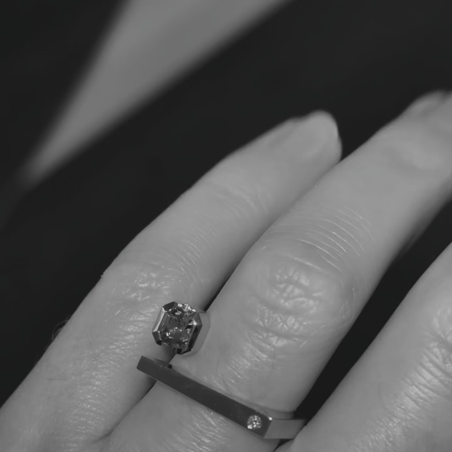 • Gems: 0.67 ct asscher cut purple Sapphire, round cut white Diamonds (total weight 0.03 ct)